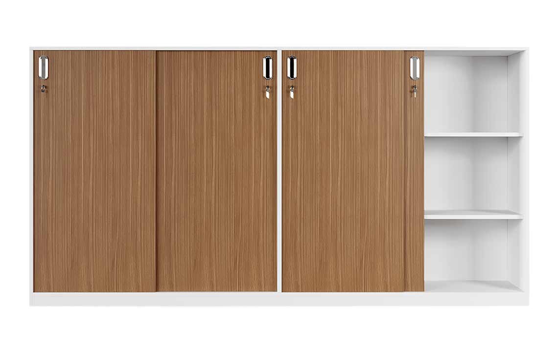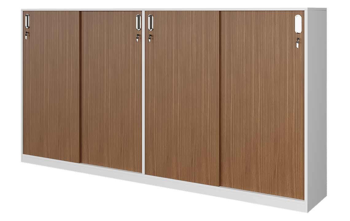 Explore the Cabinet – 027 Mid Height Sliding Door Cabinet by Highmoon UAE, crafted for the modern office. Made from durable melamine-faced MDF with a wooden finish, this cabinet features sleek chrome groove type metal handles and smooth, heavy-duty sliders for easy access. It’s lockable for security and offers three rows of file storage, providing ample space to organize and protect your documents. Perfect for any professional setting, this cabinet combines functionality with stylish design.